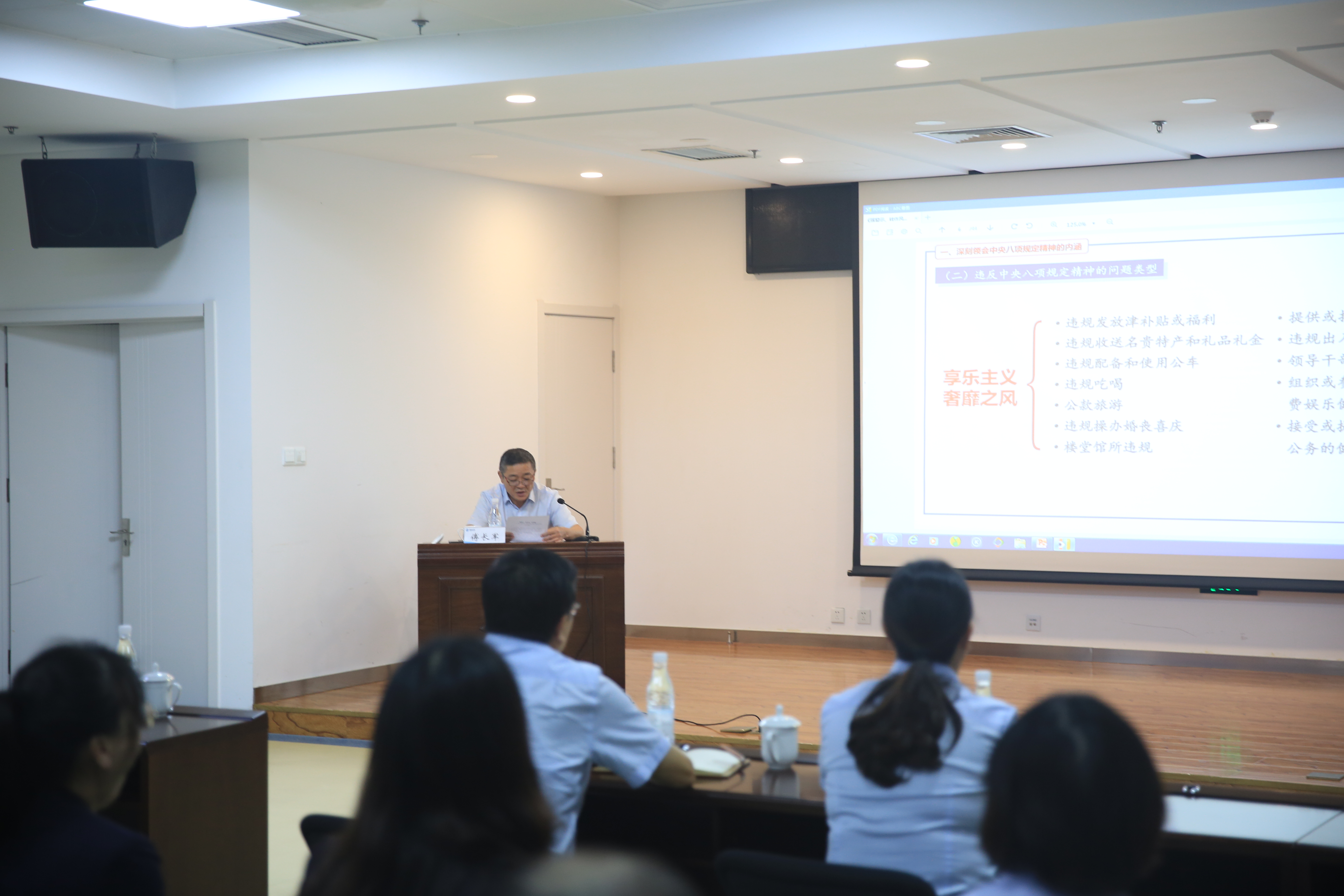 三、積極響應(yīng)開展主題宣講。環(huán)境公司紀(jì)委面向機(jī)關(guān)全體黨員,開展深入落實(shí)中央八項(xiàng)規(guī)定精神、持之以恒糾治“四風(fēng)”主題宣講活動(dòng)。